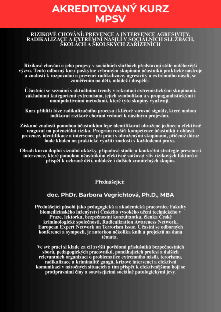 Připravujeme kurz 4. 2. 2026 (přednášející: PhDr. Barbora Vegrichtová, PhD. MBA.)