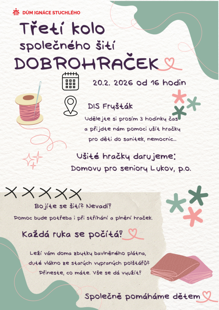 Společně šitím Dobrohraček nám pomozte rozzářit obličeje seniorů v Domově seniorů v Lukově.